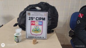 Diante da situação, a guarnição realizou a abordagem e, durante a revista pessoal, foi encontrada uma porção de 23,7 gramas de uma substância análoga ao crack, armazenada dentro de uma mochila.